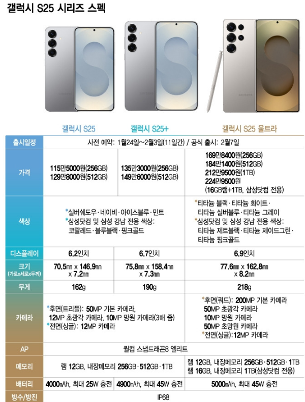 1.갤럭시 S25 울트라 가격 색상 스펙은?