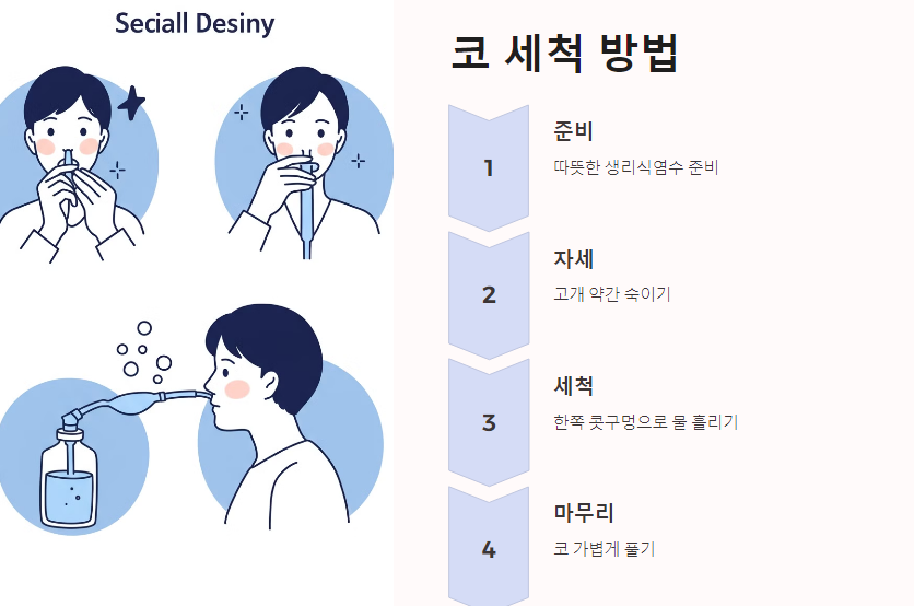 - 세척 후에는 코를 가볍게 풀어줍니다.