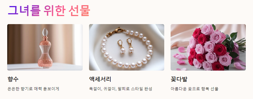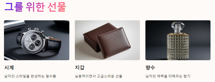 - 지갑: 실용적이면서도 고급스러운 선물입니다.