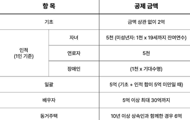 상속세 면제한도의 종류