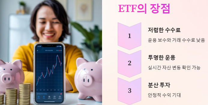 ETF의 가장 큰 장점 중 하나는 저렴한 수수료입니다. 일반 펀드에 비해 운용 보수가 낮고, 거래 수수료도 적게 발생합니다. 또한, ETF는 투명한 운용이 가능하여 투자자들이 실시간으로 자산의 변동을 확인할 수 있습니다.