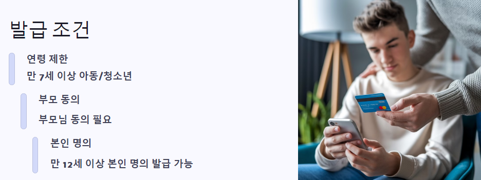 토스 유스카드는 발급이 간편합니다. 만 7세 이상의 아동이나 청소년이라면 누구나 신청할 수 있으며, 부모님 동의가 필요합니다. 특히, 만 12세 이상부터는 본인 명의로 체크카드 발급이 가능해 일상적인 금융 생활에 도움을 줄 수 있습니다. 하지만 만 12세에서 13세까지는 하루 3만원, 한 달에 30만원의 한도가 적용됩니다. 만 14세 이상부터는 한도 증액의 기회가 주어집니다.