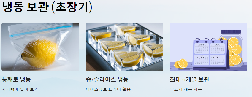 레몬을 몇 달 동안 보관하고 싶다면 냉동 보관이 가장 좋습니다. 냉동 보관 시 다음과 같은 방법을 추천합니다: