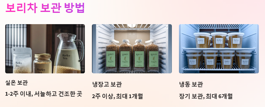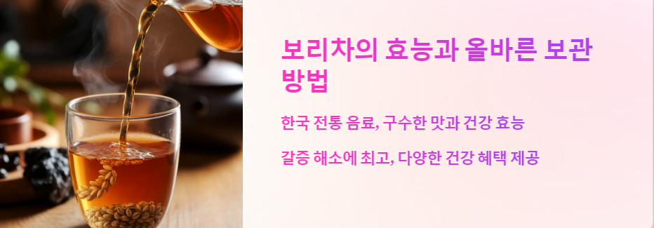 보리차는 그 구수한 맛과 다양한 건강 효능으로 우리 일상에서 빠질 수 없는 음료입니다. 올바르게 보관하여 오랫동안 즐기면서 건강과 행복을 함께 느껴보세요.