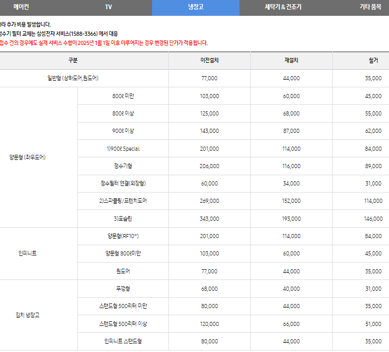 - 추가 서비스: 냉장고 청소나 추가 설치 작업이 필요한 경우 별도 비용이 발생합니다.