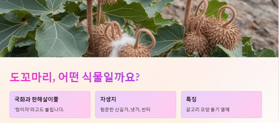 "여러분, 혹시 도꼬마리라는 식물을 아시나요? 길가나 공원에서 흔히 볼 수 있는 잡초 같은 식물인데요. 사실 이 도꼬마리가 우리 몸에 정말 다양한 효능을 가지고 있다는 사실, 알고 계셨나요? 오늘은 도꼬마리의 놀라운 효능과 활용법에 대해 함께 알아보는 시간을 가져보도록 하겠습니다."