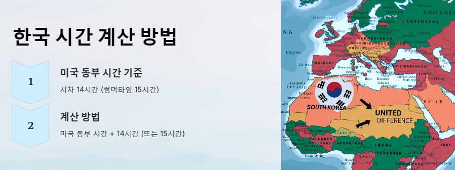 미국 주식 거래 시간을 한국 시간으로 계산하려면, 미국 동부 시간을 기준으로 계산해야 합니다. 한국과 미국 동부 시간의 시차는 14시간(썸머타임 적용 시 15시간)이므로, 미국 동부 시간에 14시간(또는 15시간)을 더하면 한국 시간이 됩니다.