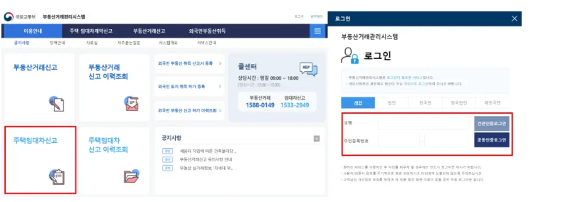 이 시스템에 접속하면, 다양한 서비스와 정보를 확인할 수 있으며, 주택임대차계약 신고를 위한 메뉴도 쉽게 찾을 수 있습니다.