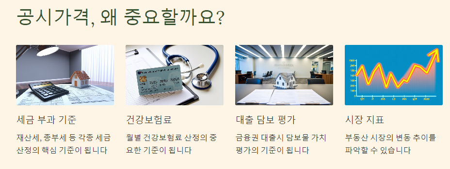 - 재산세, 종합부동산세, 상속세, 증여세 등 각종 세금 부과의 기준이 됩니다.