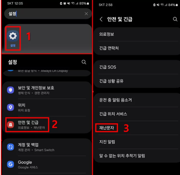 재난문자 설정 방법