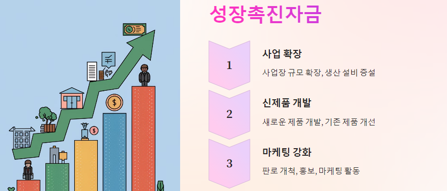 • 마케팅 강화: 판로 개척, 홍보, 마케팅 활동 등에 필요한 자금을 말합니다. 📢