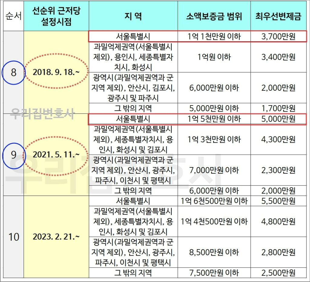 - 최우선변제금은 보증금의 일정 비율로 결정되며, 지역에 따라 다를 수 있습니다.
