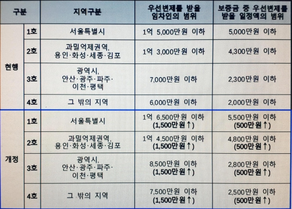 소액임차인 최우선변제금의 변천사