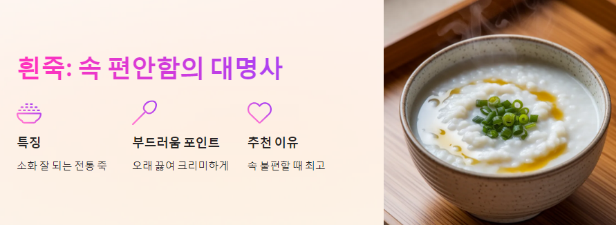 2. 🥣 흰죽: 속 편안함의 대명사, 든든한 영양 만점!