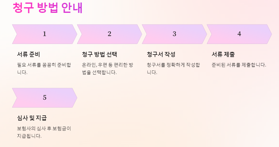 • 보험 회사에 물어보기: 보험 회사마다 청구 서류나 방법이 조금씩 다를 수 있어요. 청구하기 전에 보험 회사 고객센터나 홈페이지에서 필요한 서류를 다시 한번 확인하는 것이 정확하고 확실합니다.