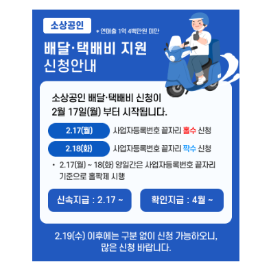 - 특별 신청일 : 2월 17일과 18일에는 사업자 등록번호에 따라 신청이 가능합니다.