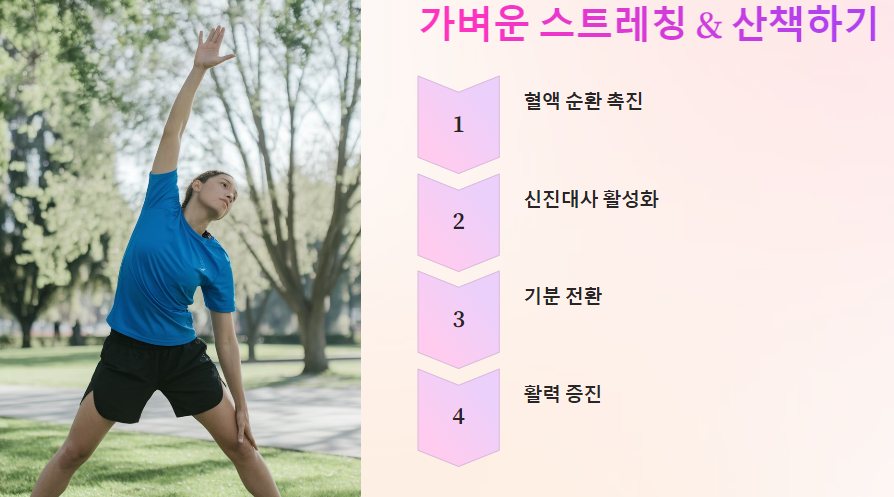 7. 🚶‍♀️ 가벼운 스트레칭 & 산책하기 : 혈액 순환 & 신진대사 촉진!